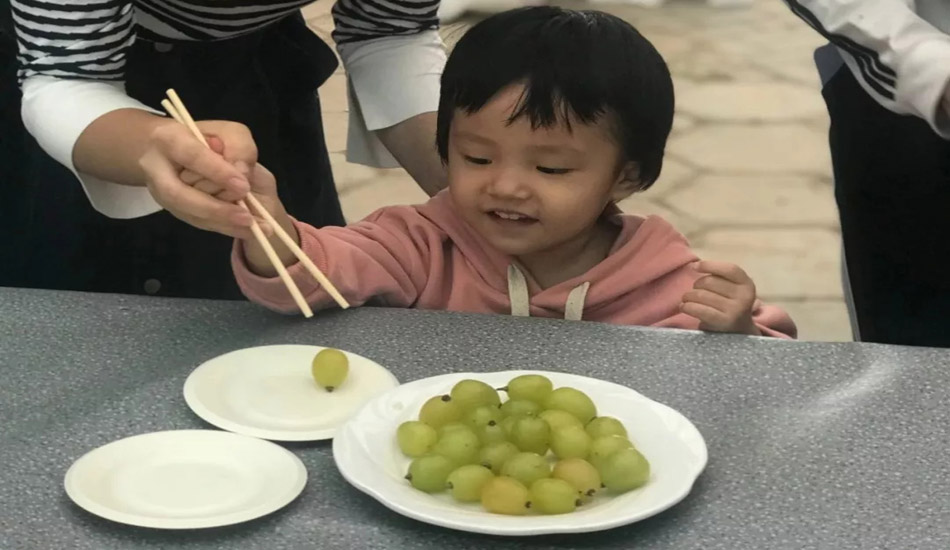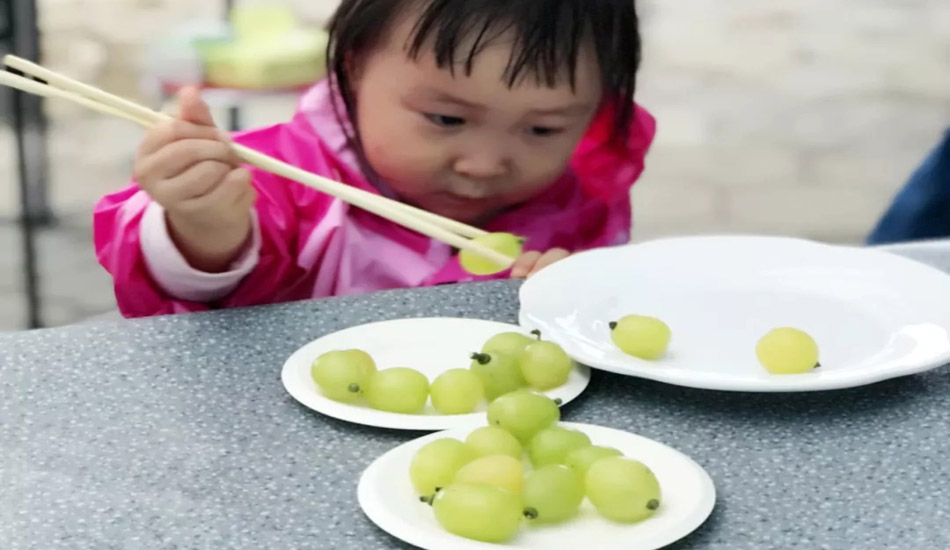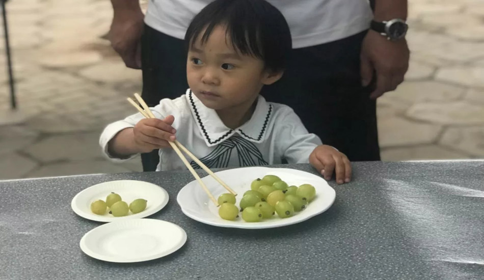 一个小时的养精蓄锐,很快就到达了葡萄园,稍事休息之后,开始了我们第一个小游戏:?葡萄,别看宝贝们年龄小,夹葡萄也是稳准狠呐。